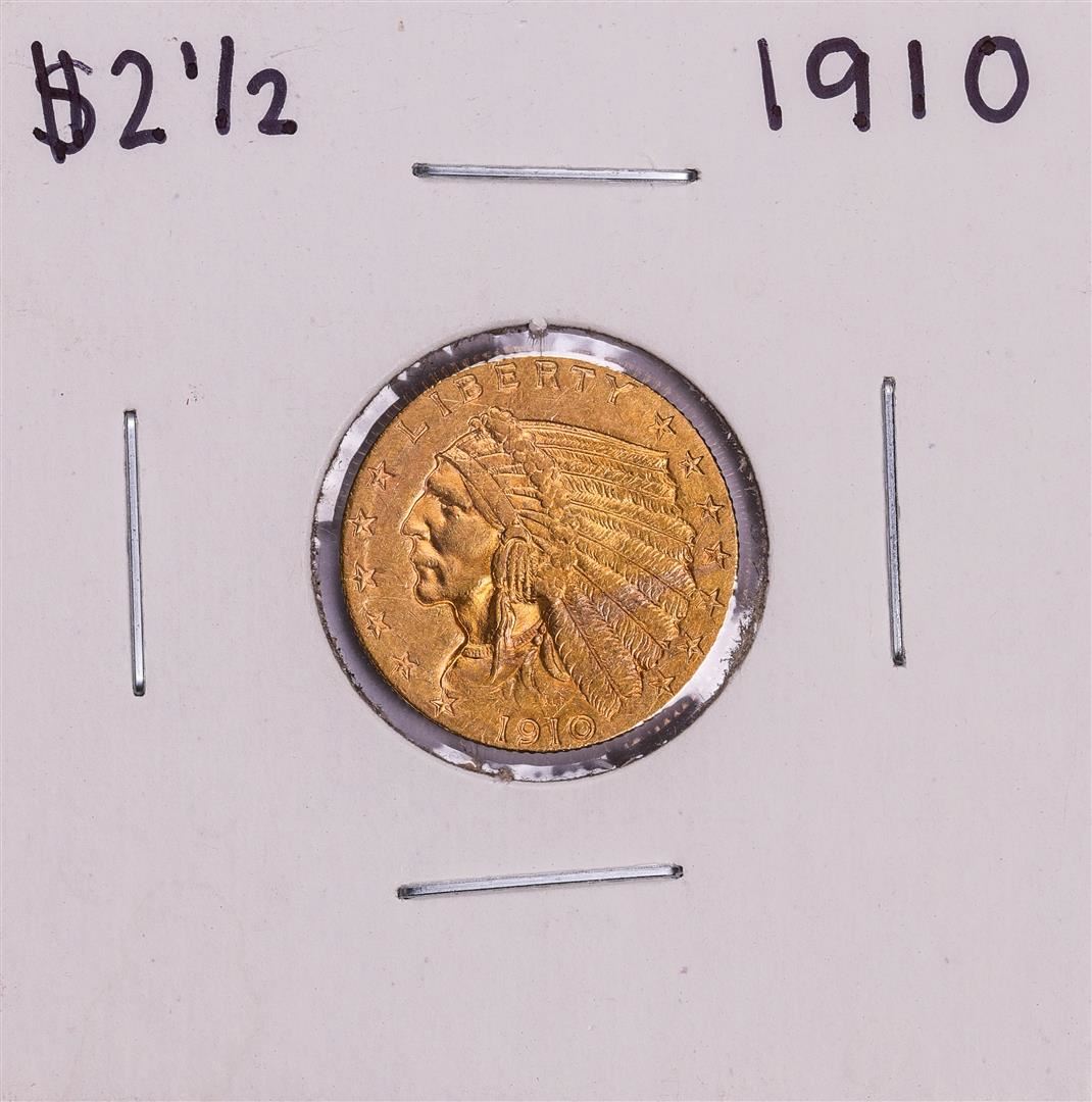 One 1910 $2 1/2 Indian Head Quarter Eagle Gold Coin.