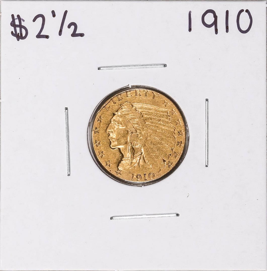One 1910 $2 1/2 Indian Head Quarter Eagle Gold Coin, please note there is some damage to the obverse rim as shown in the pictures.