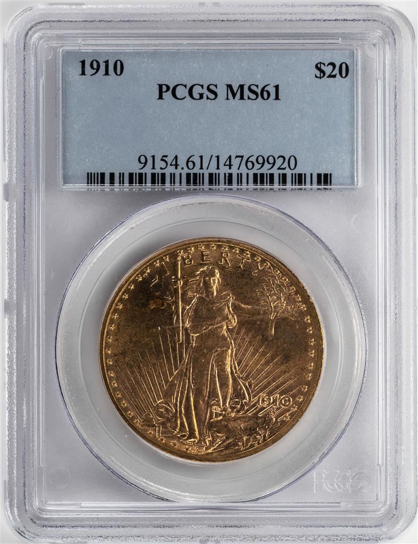 One 1910 $20 St. Gaudens Double Eagle Gold Coin PCGS MS61. PCGS Graded.
