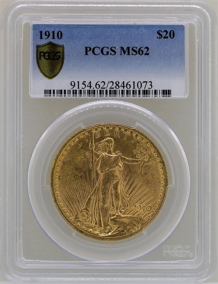 One 1910 $20 St. Gaudens Double Eagle Gold Coin PCGS MS62. PCGS Graded.