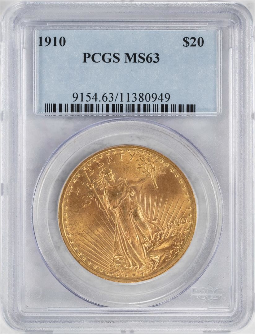 One 1910 $20 St. Gaudens Double Eagle Gold Coin PCGS MS63. PCGS Graded.