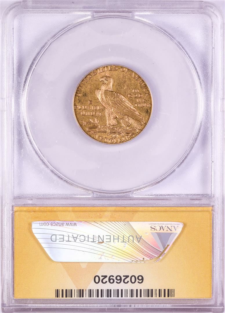 One 1910 $5 Indian Head Half Eagle Gold Coin ANACS AU58. ANACS Certified.