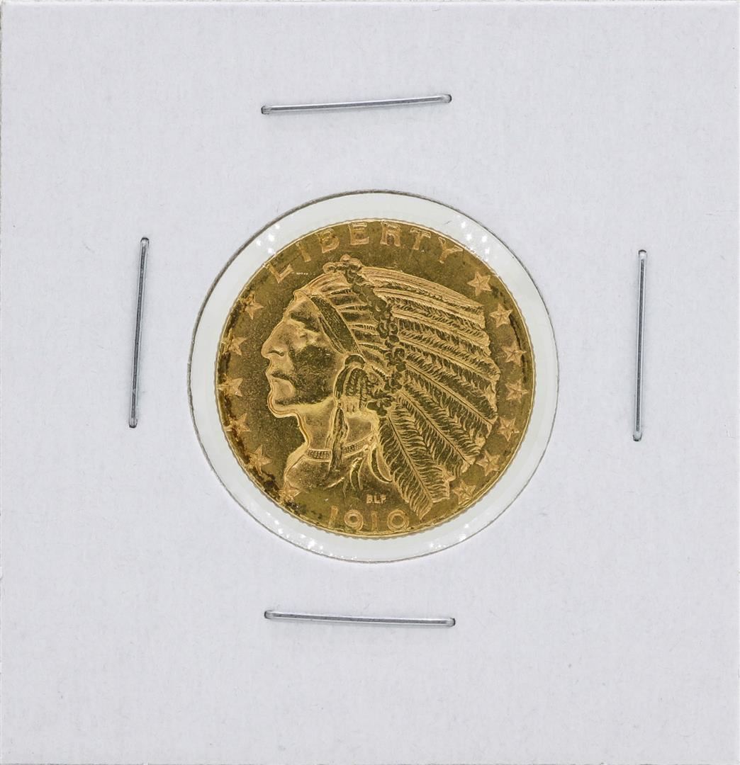 One 1910 $5 Indian Head Half Eagle Gold Coin.