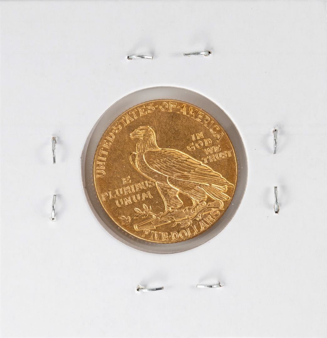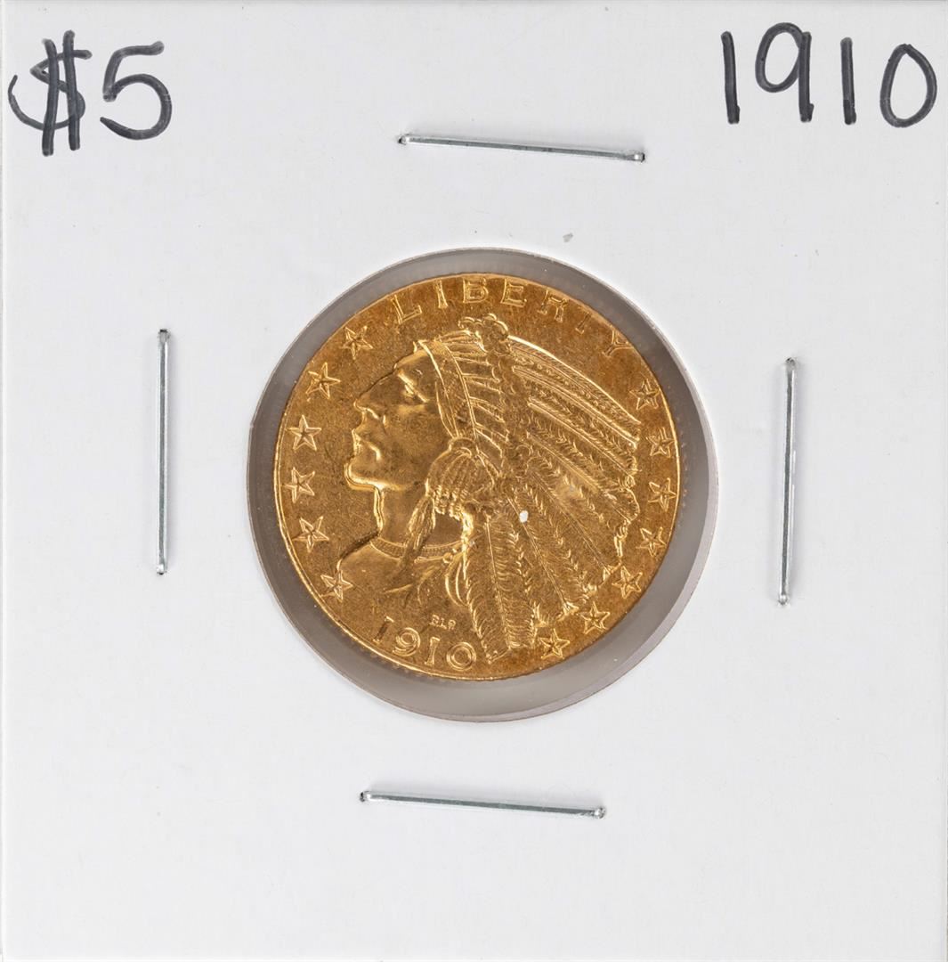 One 1910 $5 Indian Head Half Eagle Gold Coin.