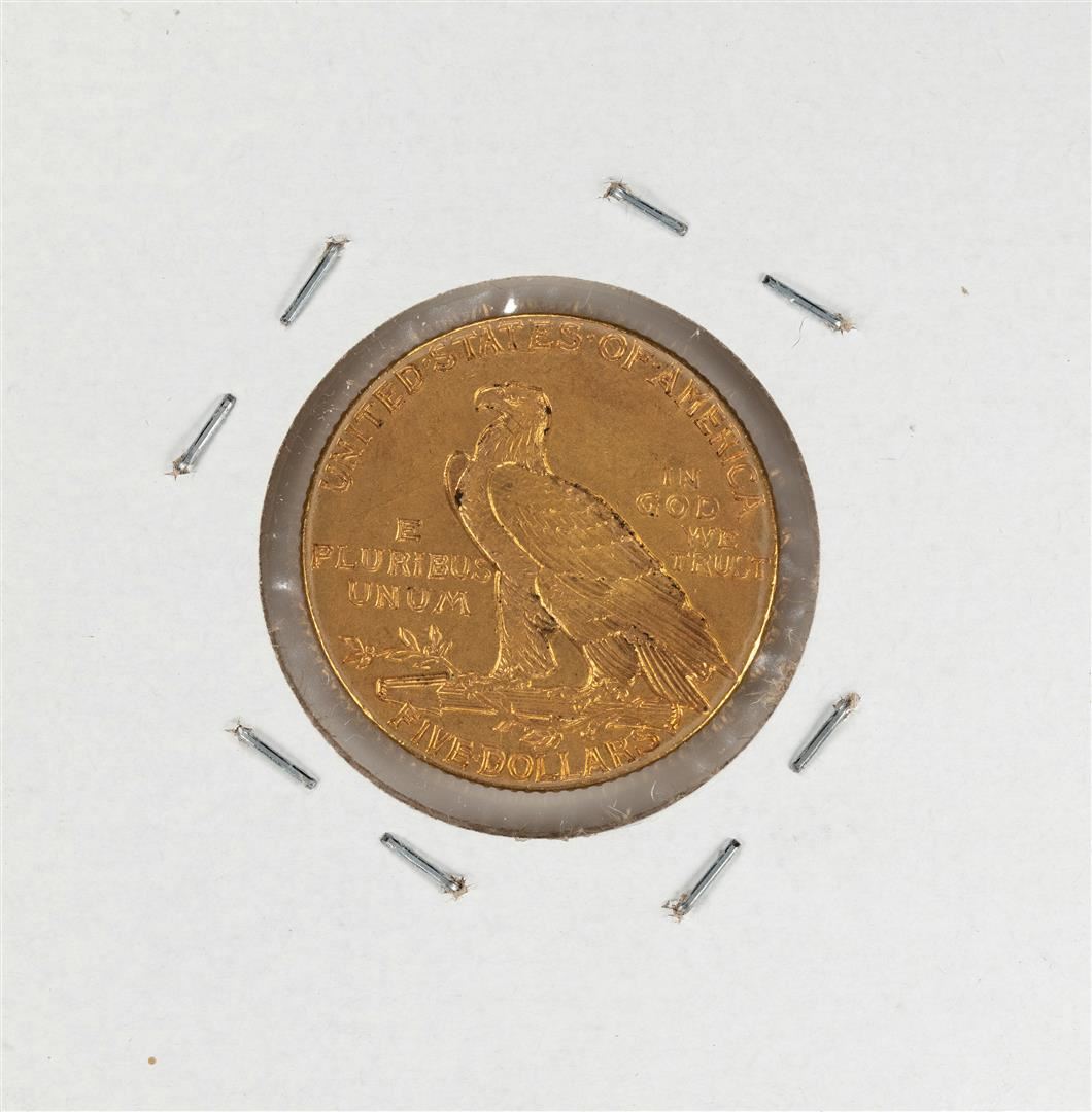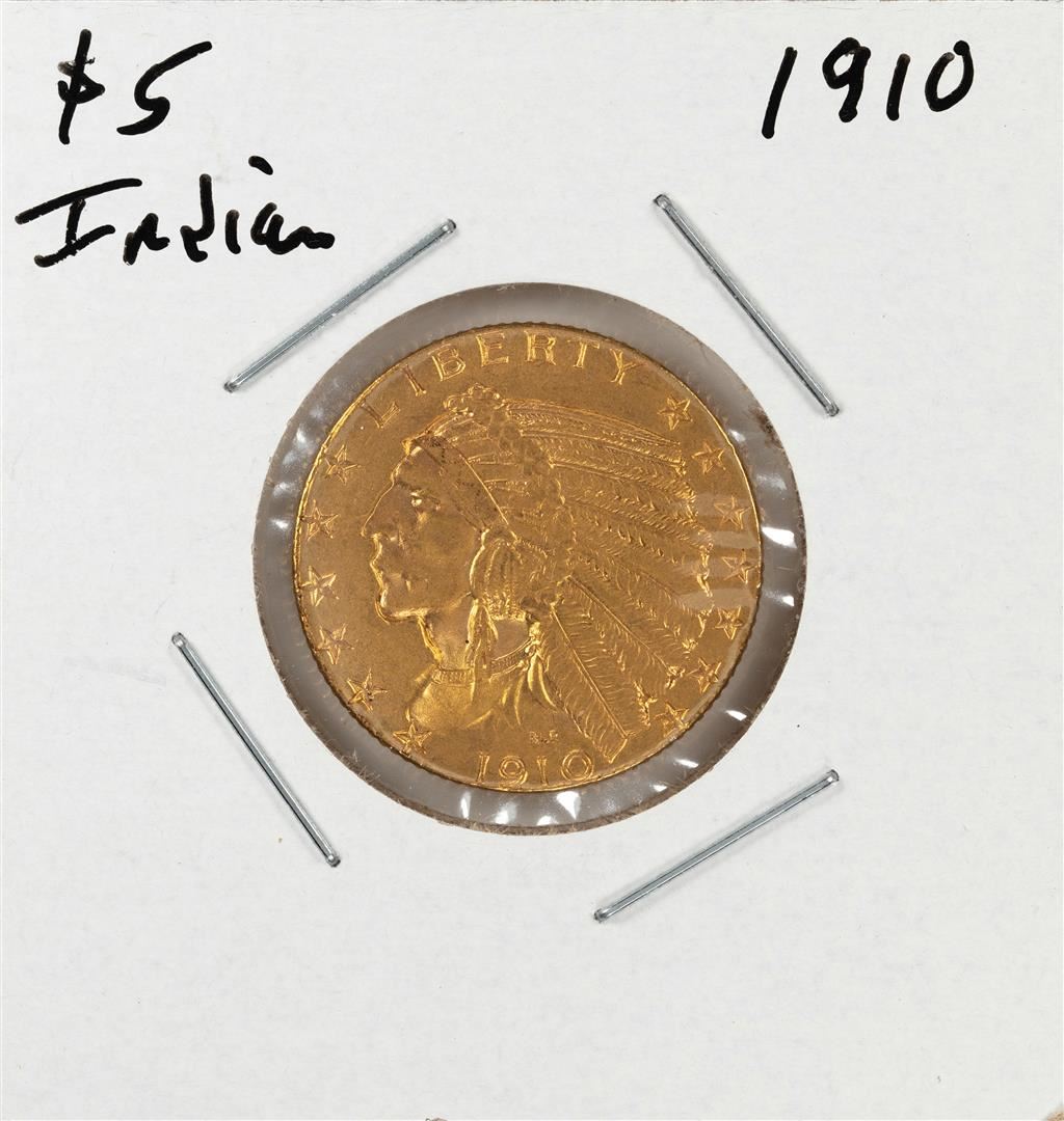 One 1910 $5 Indian Head Half Eagle Gold Coin.