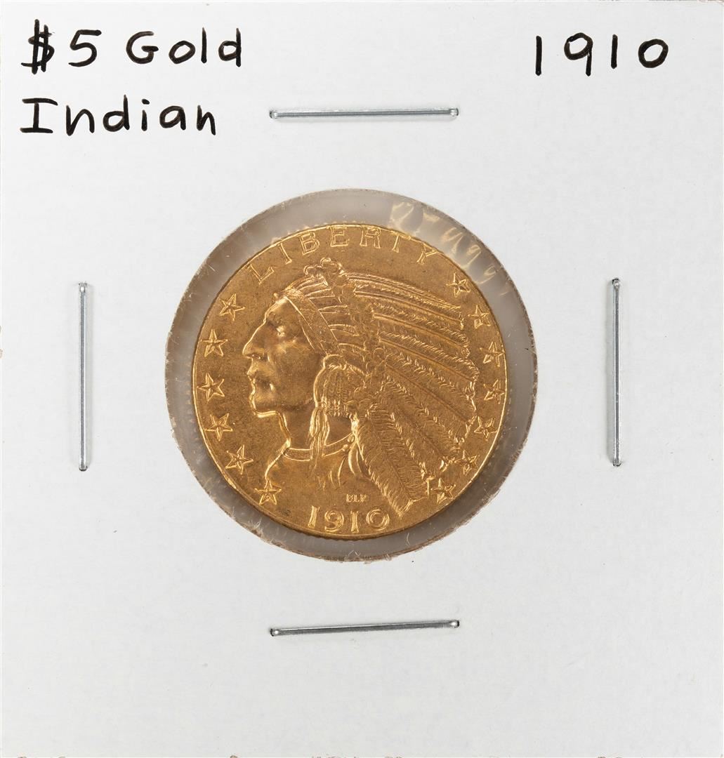 One 1910 $5 Liberty Head Half Eagle Gold Coin.