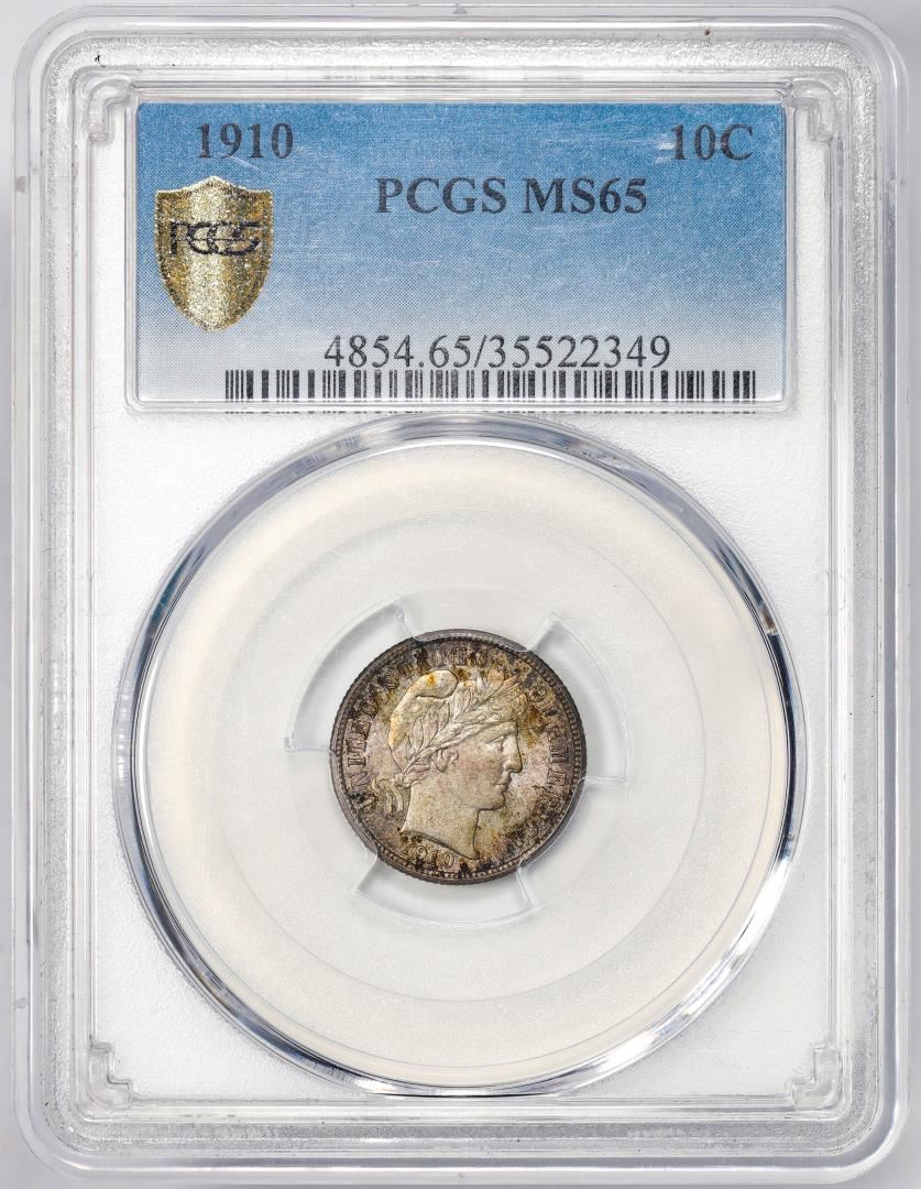 One 1910 Barber Dime Coin PCGS MS65. PCGS Graded.