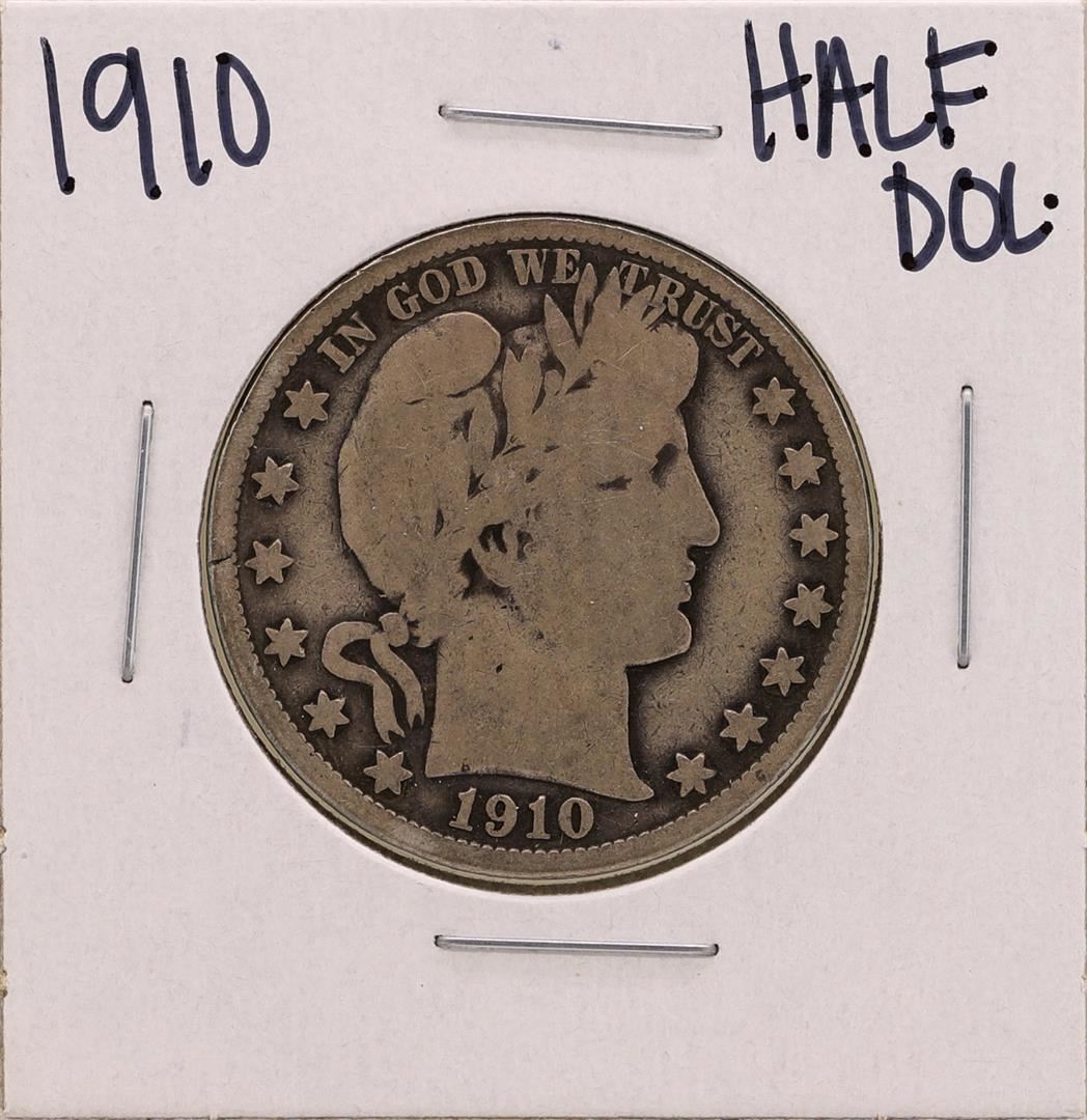 One 1910 Barber Liberty Head Half Dollar Coin.