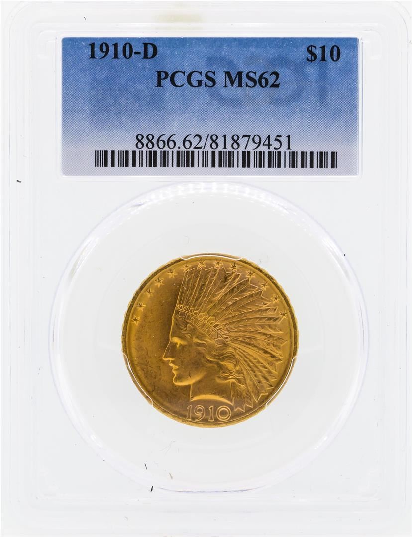 One 1910-D $10 Indian Head Eagle Gold Coin PCGS MS62. PCGS Graded.