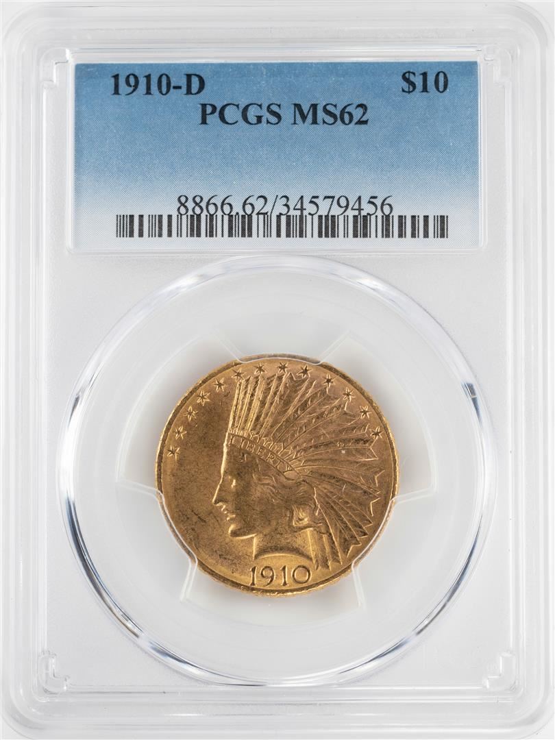 One 1910-D $10 Indian Head Eagle Gold Coin PCGS MS62. PCGS Graded.