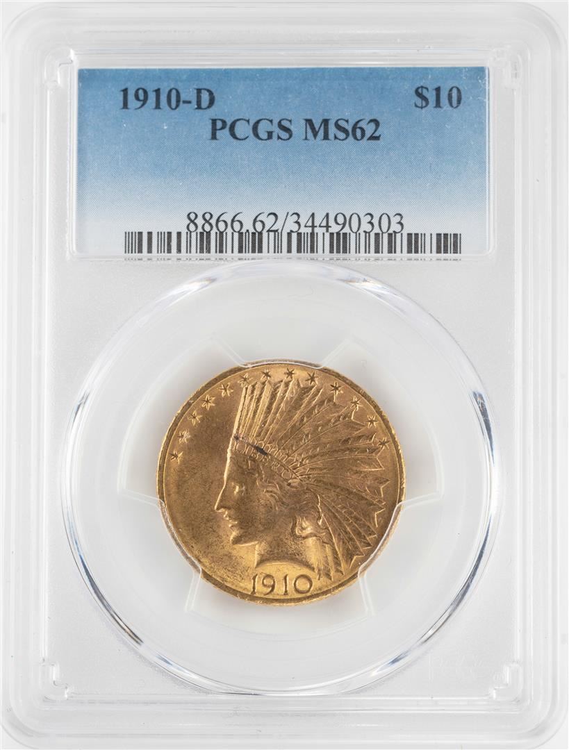 One 1910-D $10 Indian Head Eagle Gold Coin PCGS MS62. PCGS Graded.
