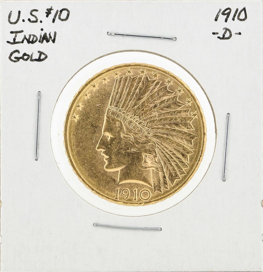 One 1910-D $10 Indian Head Eagle Gold Coin.