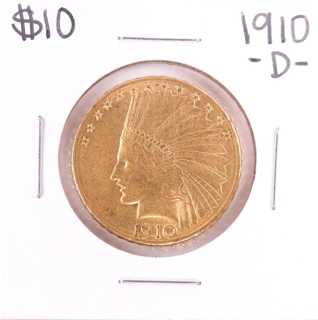 One 1910-D $10 Indian Head Eagle Gold Coin.