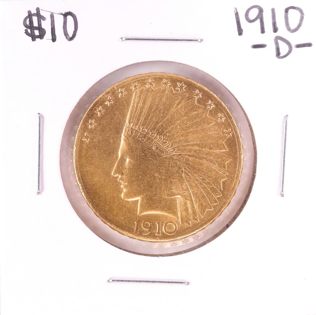 One 1910-D $10 Indian Head Eagle Gold Coin.
