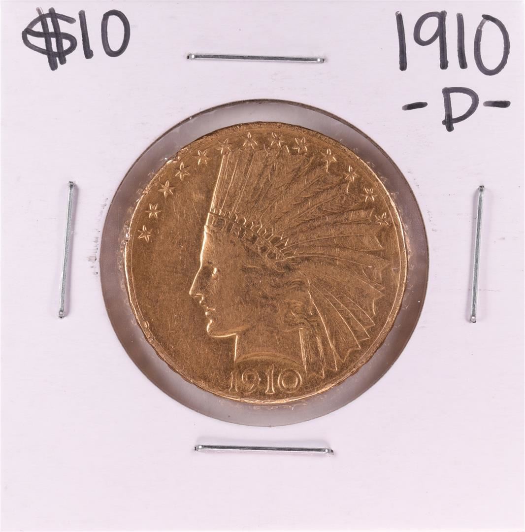 One 1910-D $10 Indian Head Eagle Gold Coin.