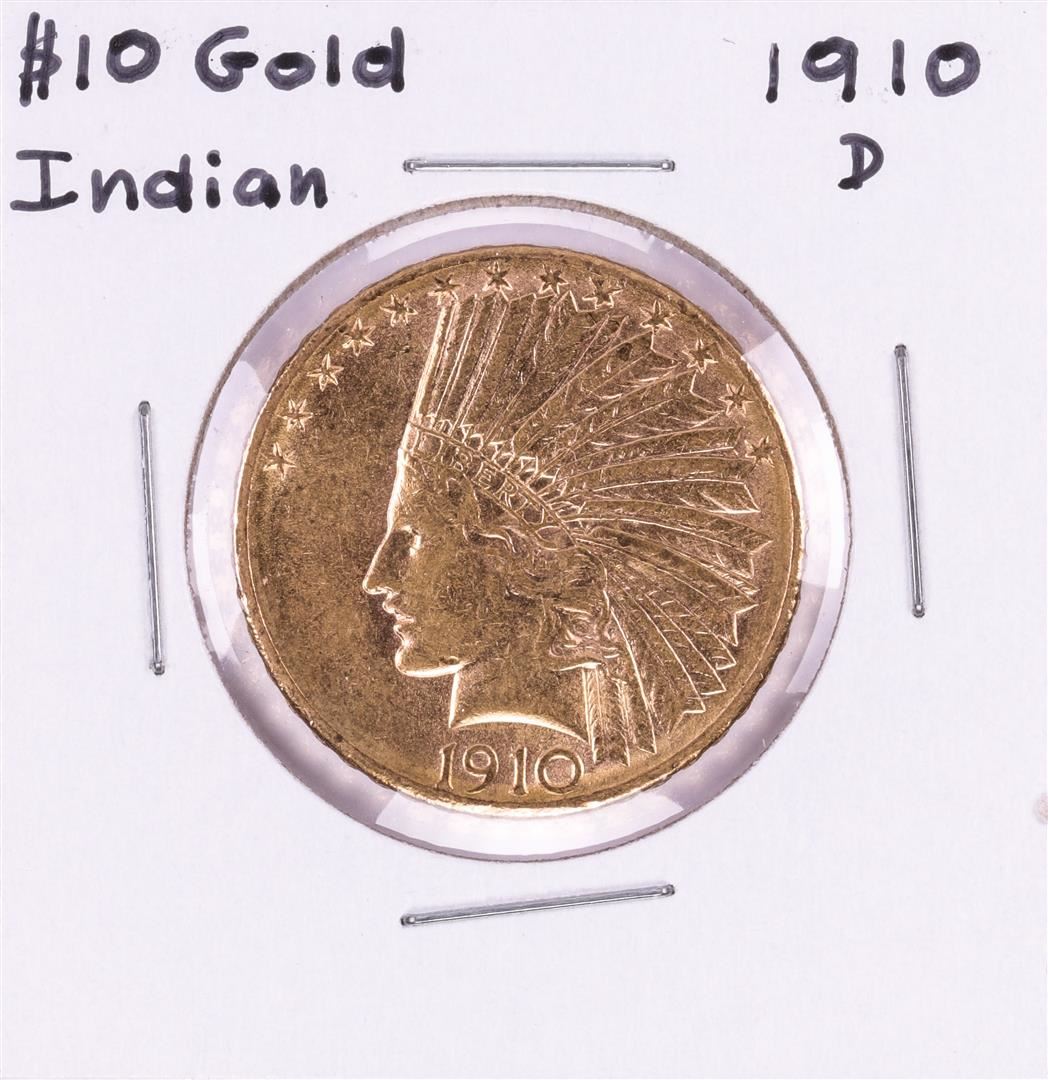 One 1910-D $10 Indian Head Eagle Gold Coin.