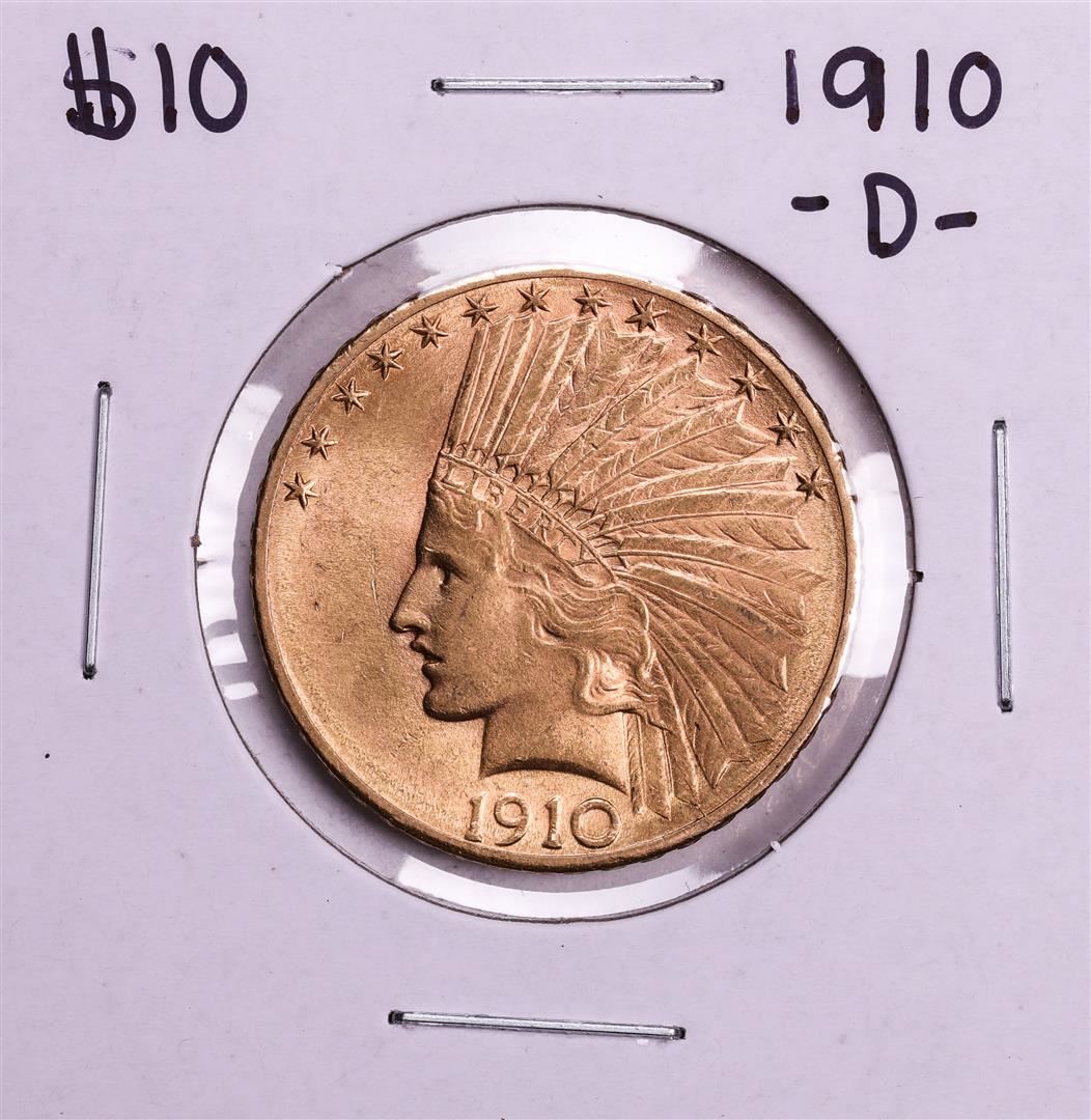 One 1910-D $10 Indian Head Eagle Gold Coin.