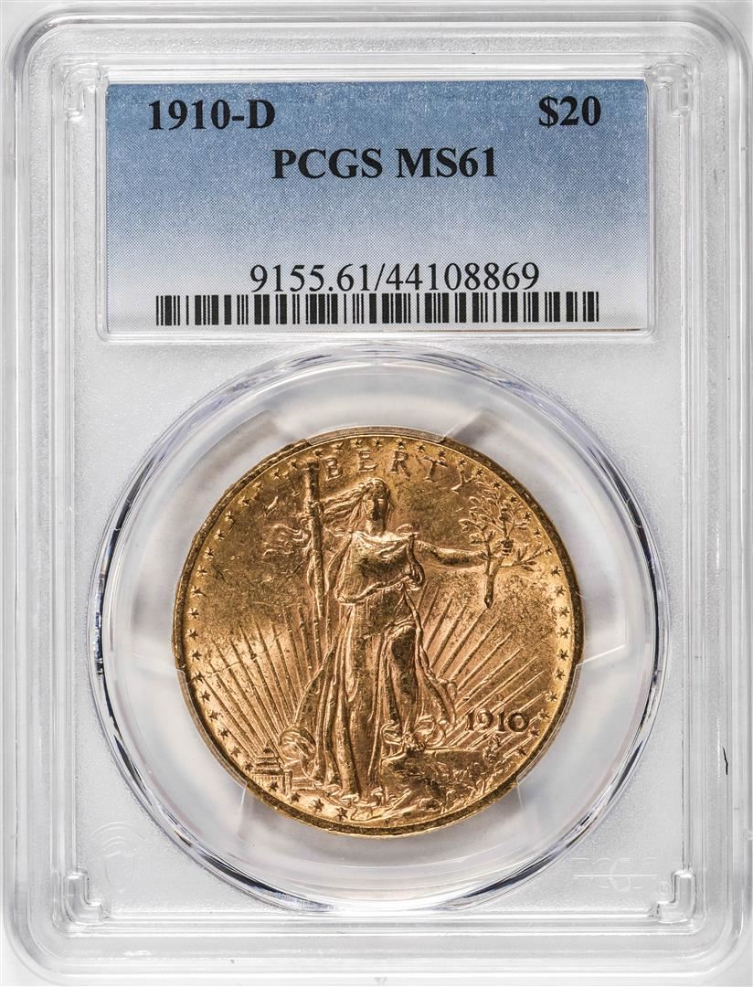 One 1910-D $20 St Gaudens Double Eagle Gold Coin PCGS MS61. PCGS Graded.