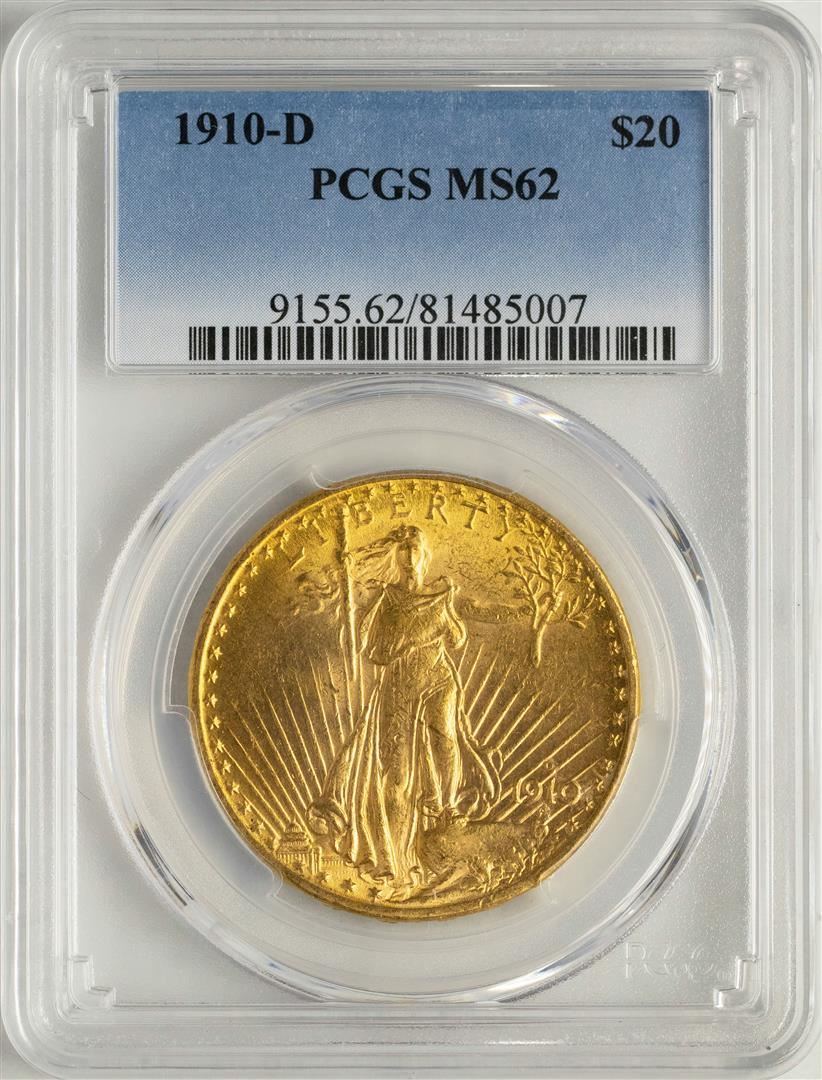 One 1910-D $20 St. Gaudens Double Eagle Gold Coin PCGS MS62. PCGS Graded.