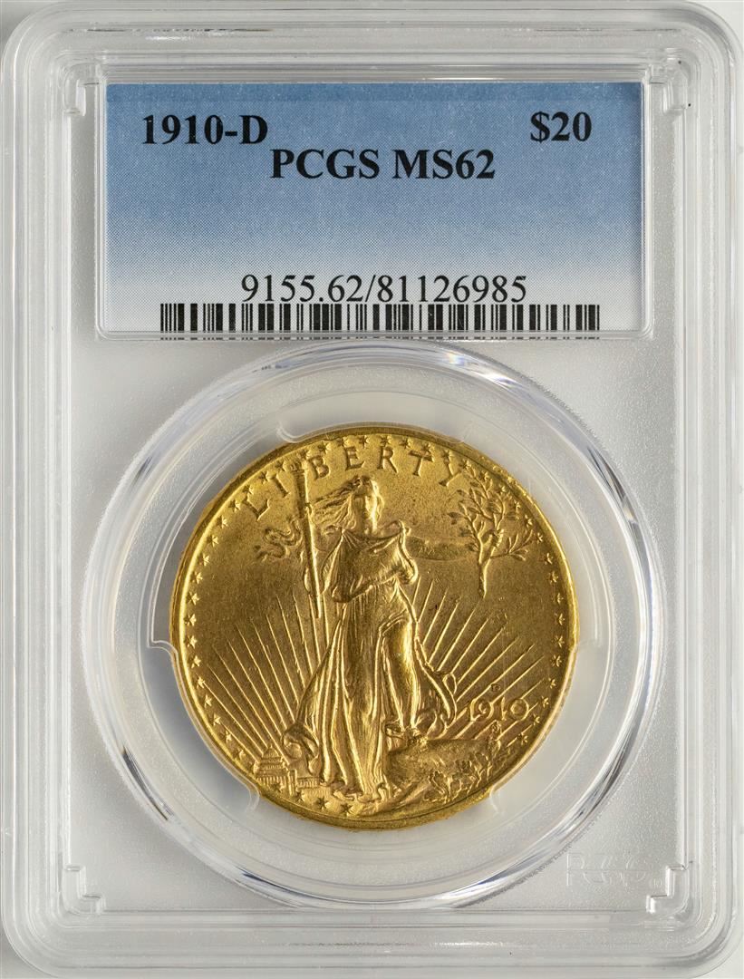 One 1910-D $20 St. Gaudens Double Eagle Gold Coin PCGS MS62. PCGS Graded.