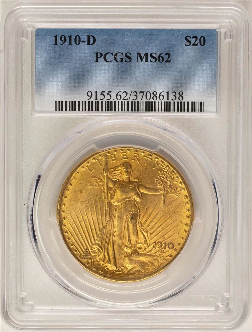One 1910-D $20 St. Gaudens Double Eagle Gold Coin PCGS MS62. PCGS Graded.