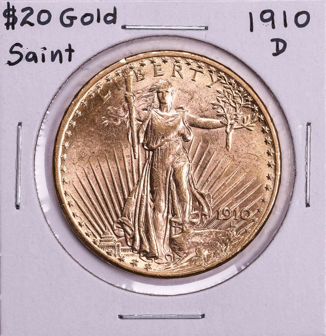 One 1910-D $20 St. Gaudens Double Eagle Gold Coin.