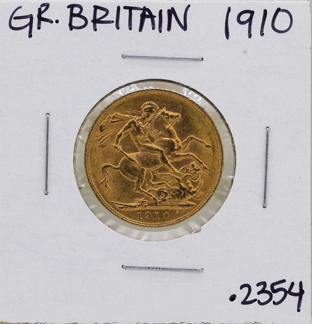 One 1910 Great Britain Edward VII Sovereign Gold Coin.