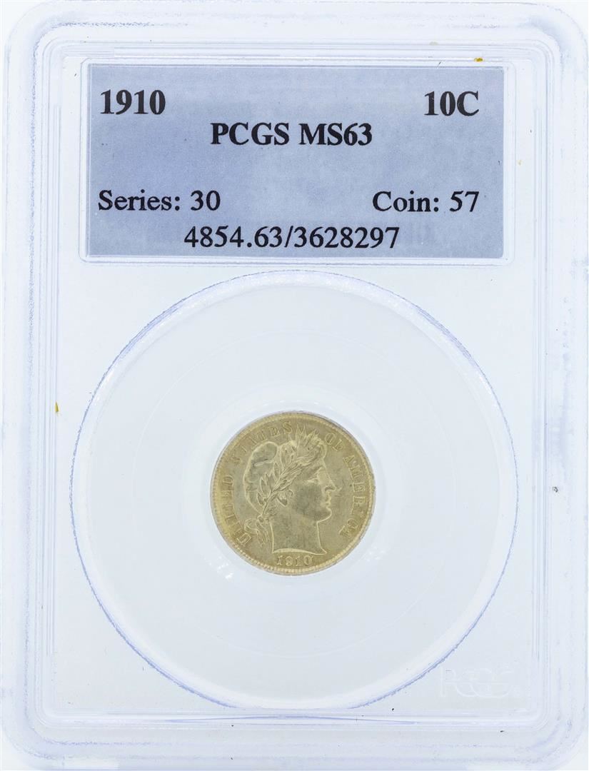 One 1910 Liberty Barber Head Dime PCGS MS63. PCGS Graded.