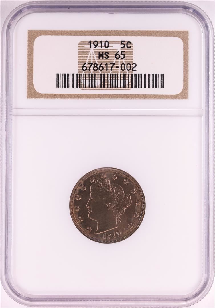 One 1910 Liberty V Nickel Coin NGC MS65. NGC Certified.