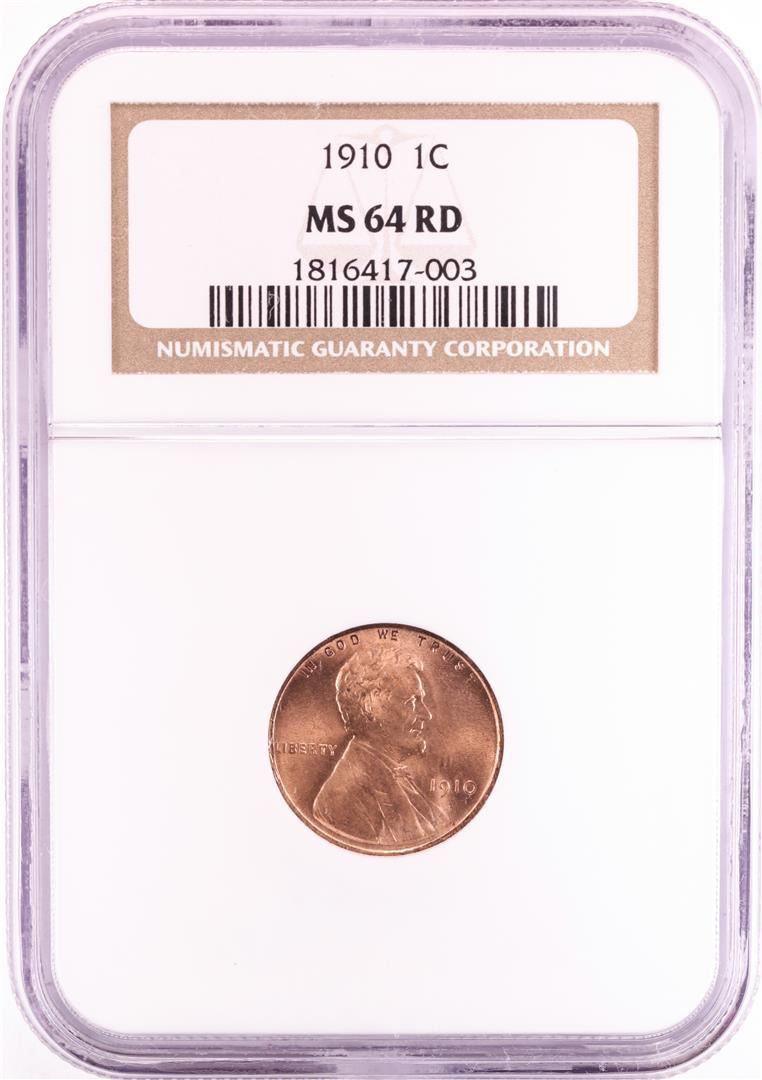 One 1910 Lincoln Wheat Cent Coin NGC MS64RD. NGC Certified.