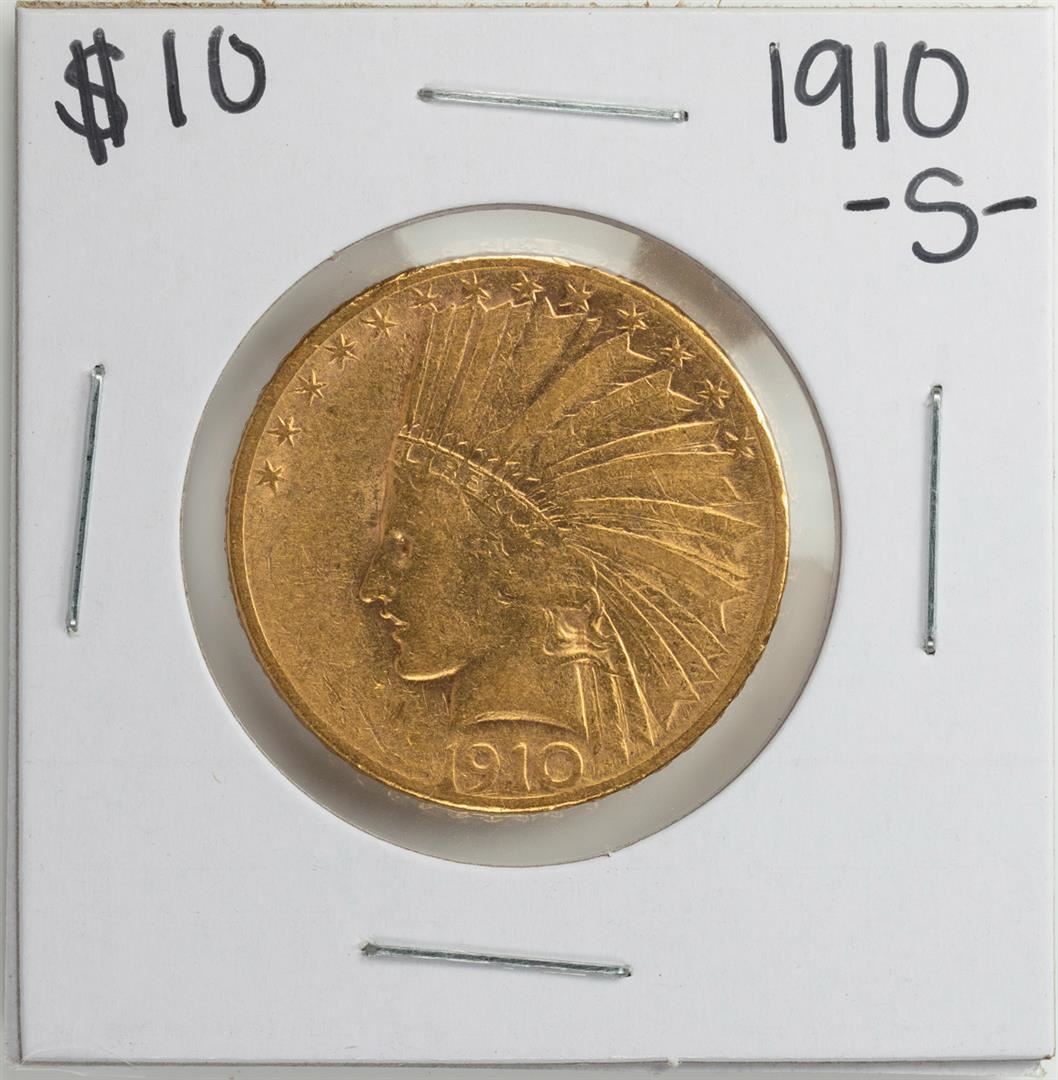 One 1910-S $10 Indian Head Eagle Gold Coin.