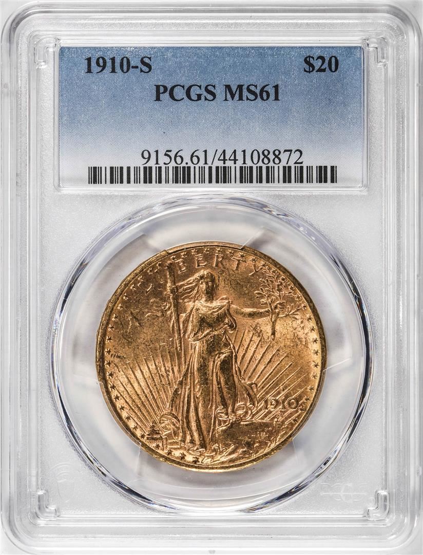One 1910-S $20 St Gaudens Double Eagle Gold Coin PCGS MS61. PCGS Graded.