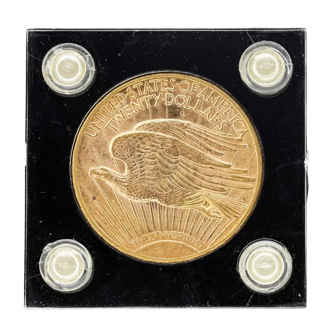 One 1910-S $20 St. Gaudens Double Eagle Gold Coin.