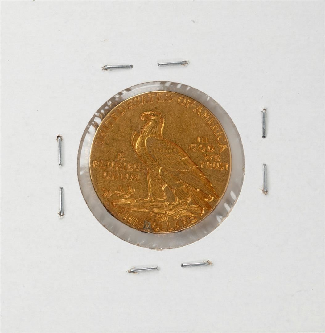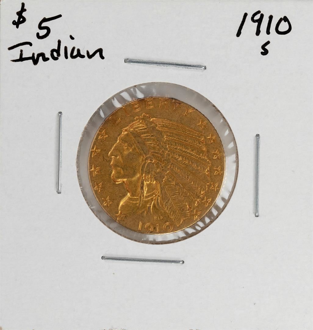 One 1910-S $5 Indian Head Half Eagle Gold Coin.