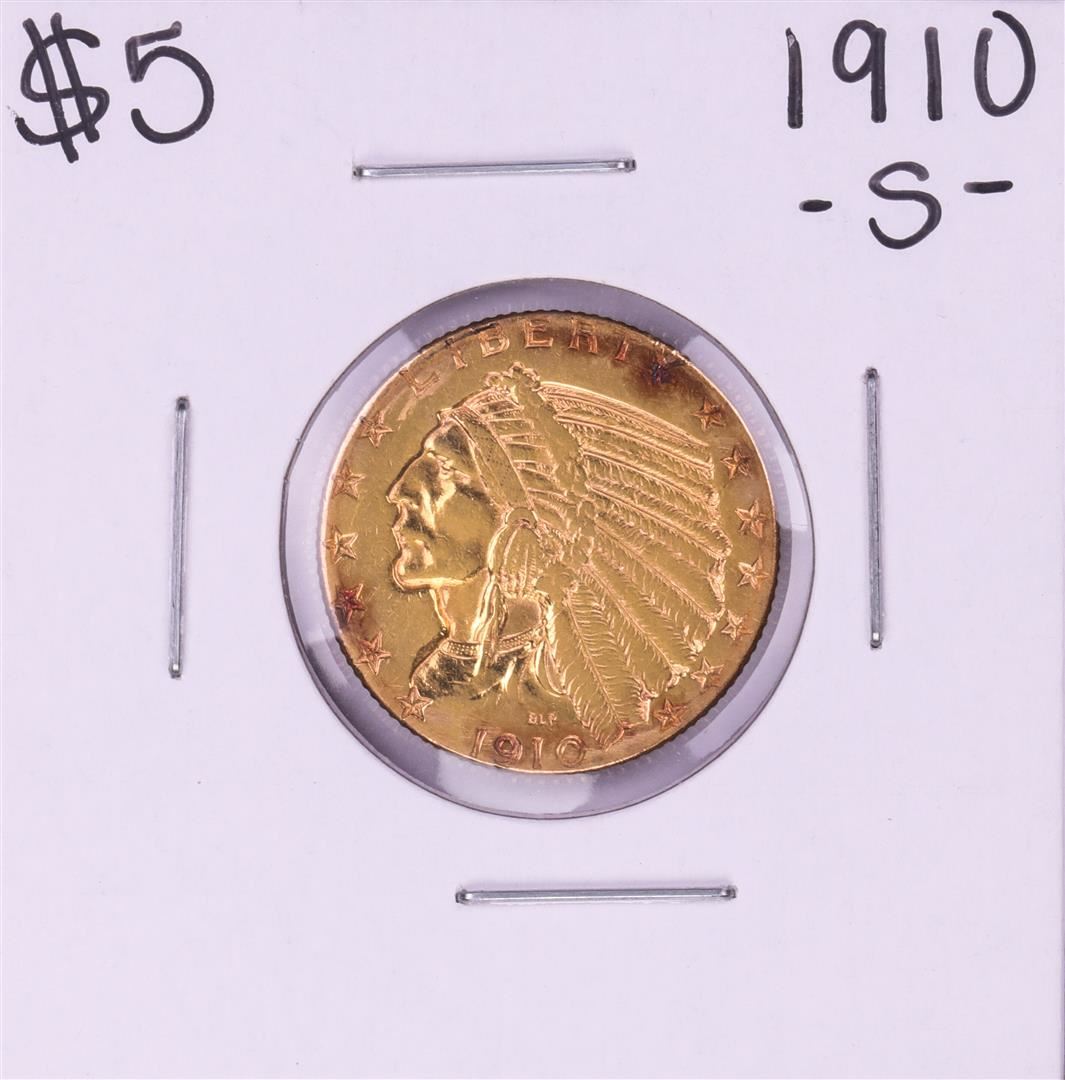 One 1910-S $5 Indian Head Half Eagle Gold Coin.