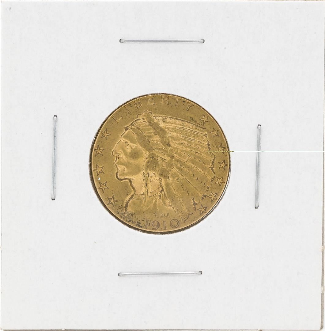 One 1910-S $5 Liberty Head Half Eagle Gold Coin.