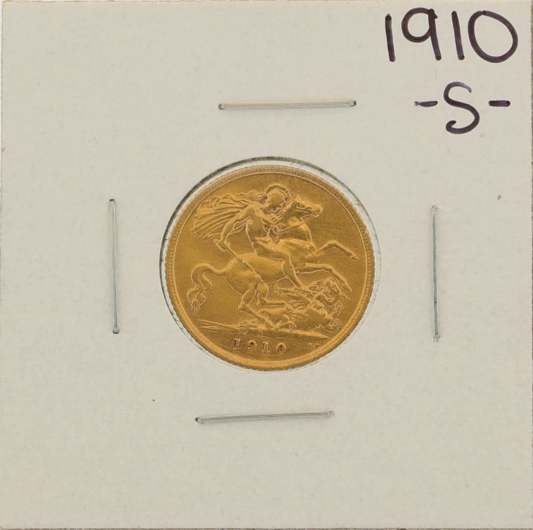 One 1910-S Australian 1/2 Sovereign Gold Coin.