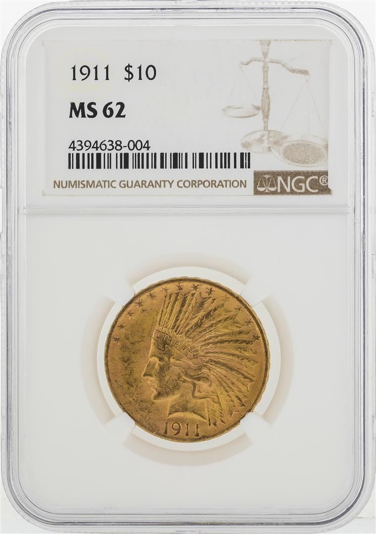 1911 $10 Indian Head Eagle Gold Coin NGC MS62