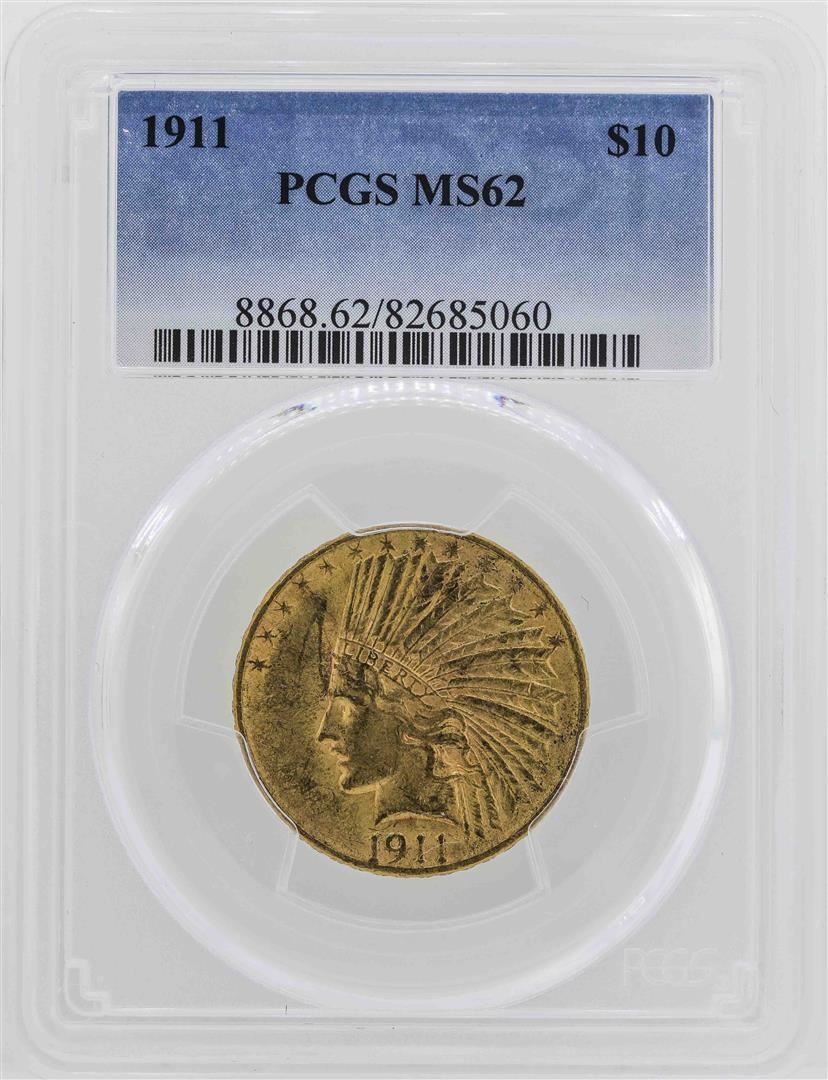 One 1911 $10 Indian Head Eagle Gold Coin PCGS MS62. PCGS Graded.