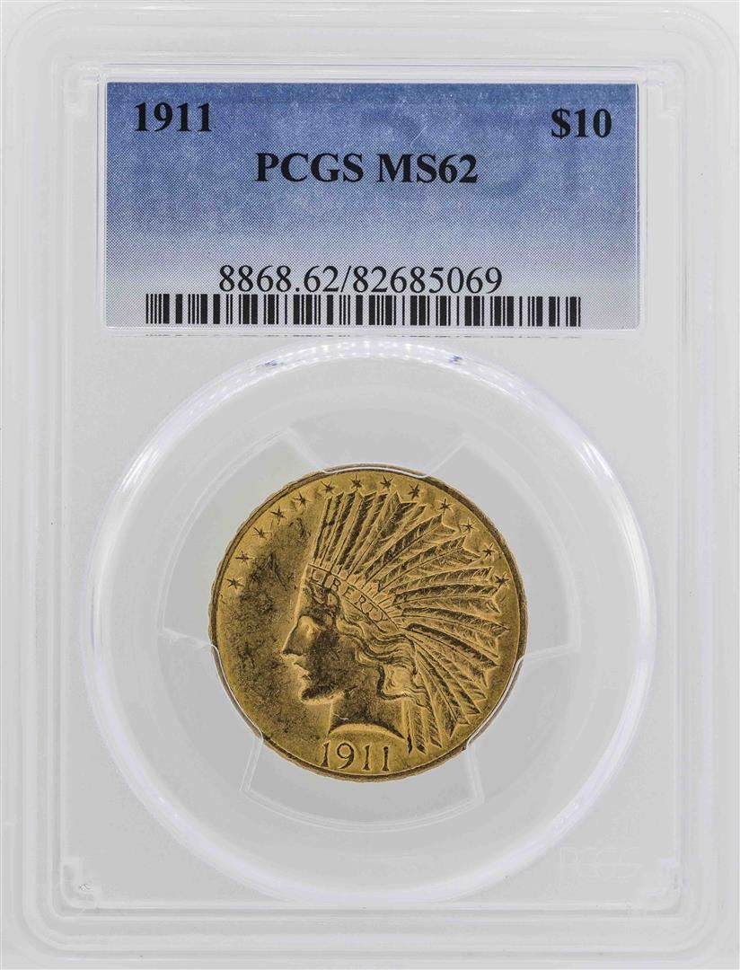 One 1911 $10 Indian Head Eagle Gold Coin PCGS MS62. PCGS Graded.