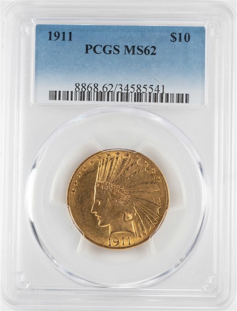 One 1911 $10 Indian Head Eagle Gold Coin PCGS MS62. PCGS Graded.