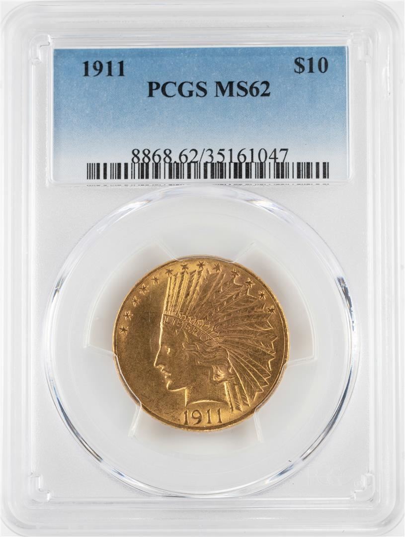 One 1911 $10 Indian Head Eagle Gold Coin PCGS MS62. PCGS Graded.