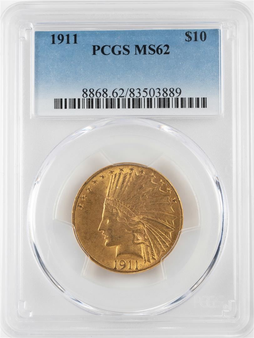 One 1911 $10 Indian Head Eagle Gold Coin PCGS MS62. PCGS Graded.