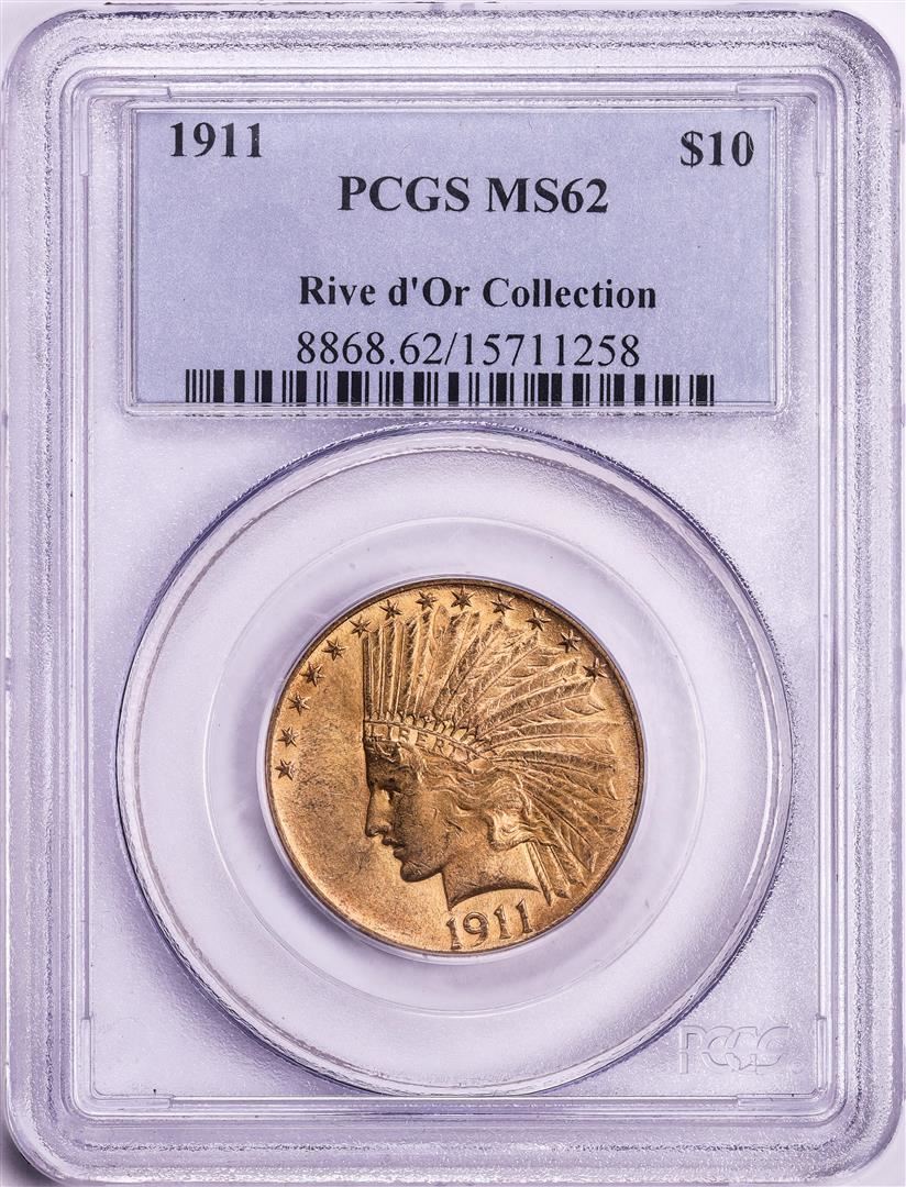 One 1911 $10 Indian Head Eagle Gold Coin PCGS MS62. PCGS Graded.