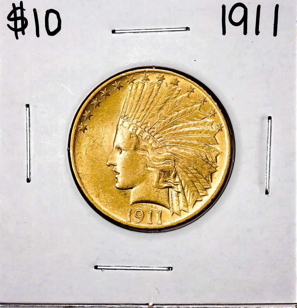 One 1911 $10 Indian Head Eagle Gold Coin.