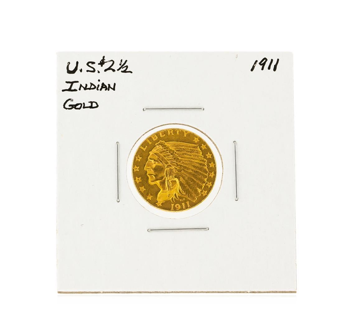 One 1911 $2 1/2 Indian Head Quarter Eagle Gold Coin.