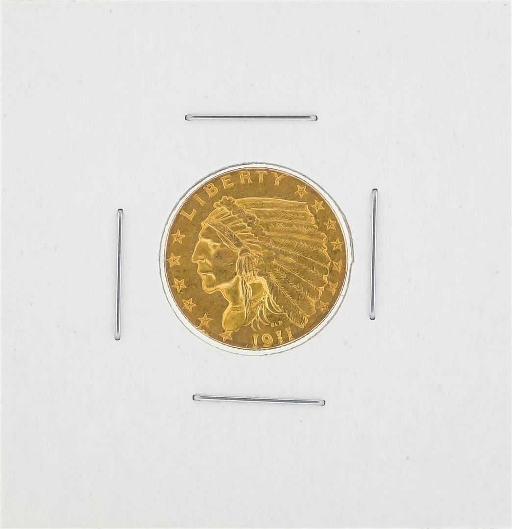 One 1911 $2 1/2 Indian Head Quarter Eagle Gold Coin.