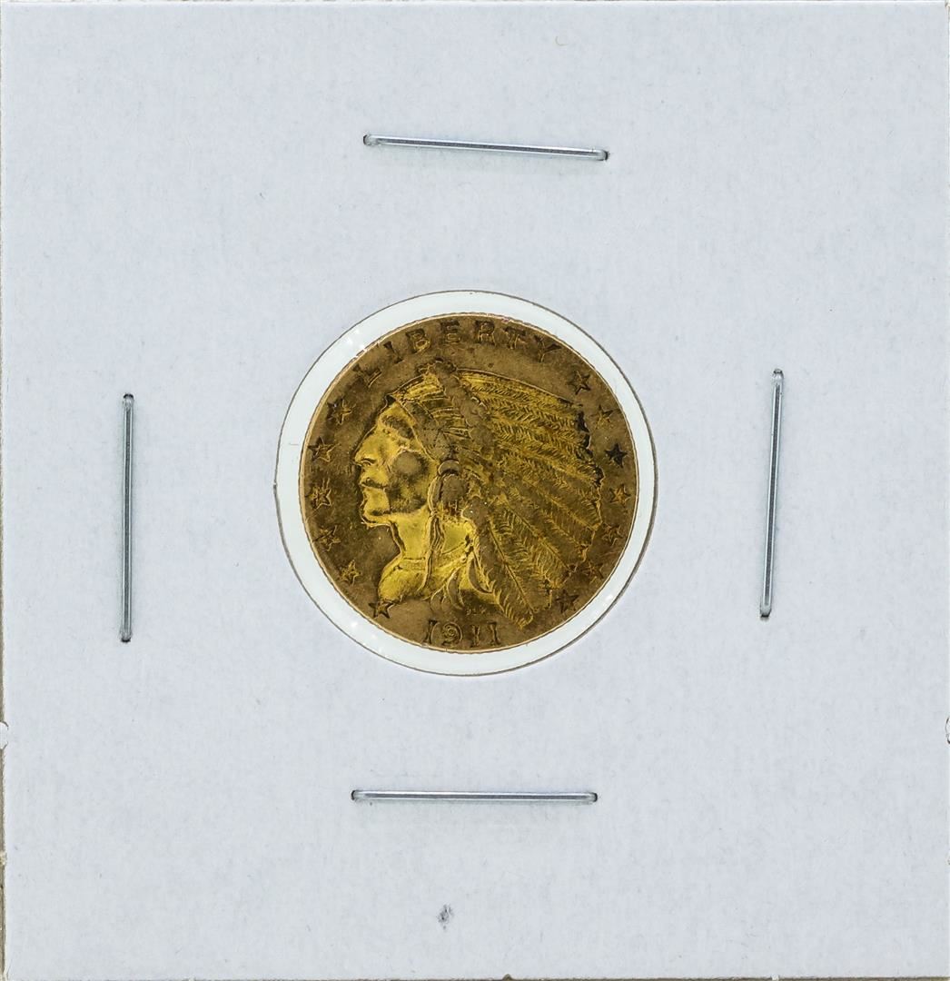 One 1911 $2 1/2 Indian Head Quarter Eagle Gold Coin.