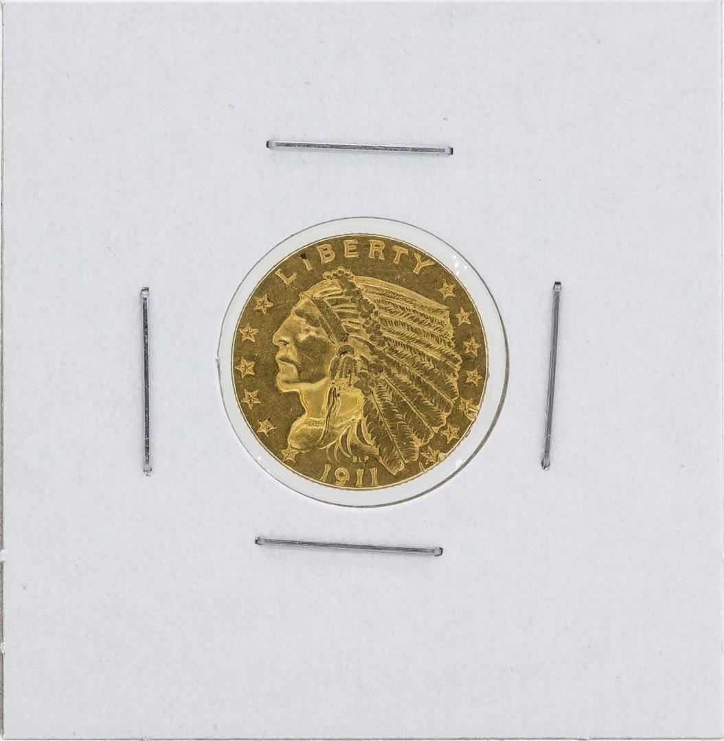 One 1911 $2 1/2 Indian Head Quarter Eagle Gold Coin.