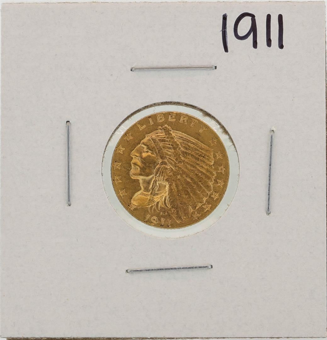 One 1911 $2 1/2 Indian Head Quarter Eagle Gold Coin.